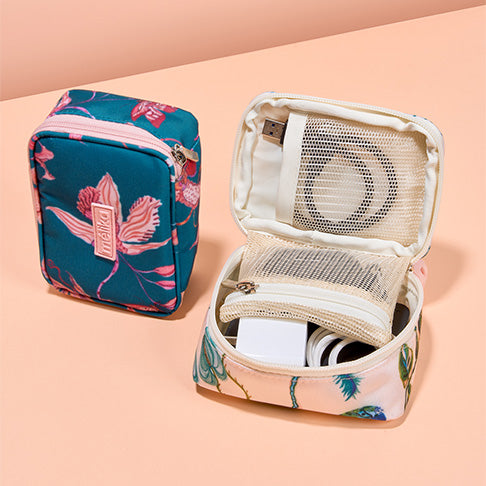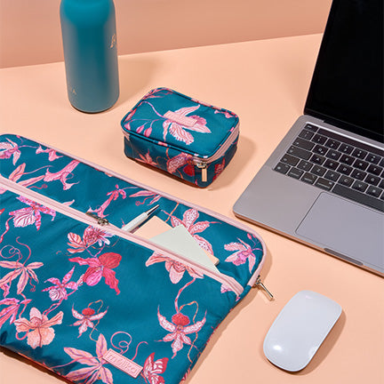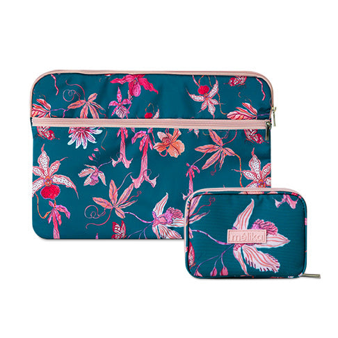 1. Estuche PC: Con interior acolchado para una mayor protección del computador. Cuenta con bolsillo para guardar cargadores, cables, etc. Caben computadores hasta de 15 pulgadas. Medidas: 29 cm de alto x 40 cm de ancho 2. Portacables: Especial para guardar cargadores, audífonos, discos duros, memorias usb, etc. También lo puedes usar para guardar maquillaje, kit de uñas, medicamentos, etc. Medidas: 14 cm de largo x 5 cm de alto x 10 cm de ancho