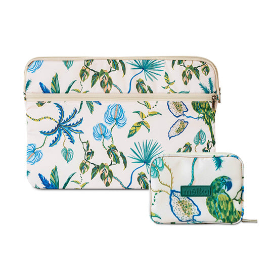1. Estuche PC: Con interior acolchado para una mayor protección del computador. Cuenta con bolsillo para guardar cargadores, cables, etc. Caben computadores hasta de 15 pulgadas. Medidas: 29 cm de alto x 40 cm de ancho 2. Portacables: Especial para guardar cargadores, audífonos, discos duros, memorias usb, etc. También lo puedes usar para guardar maquillaje, kit de uñas, medicamentos, etc. Medidas: 14 cm de largo x 5 cm de alto x 10 cm de ancho