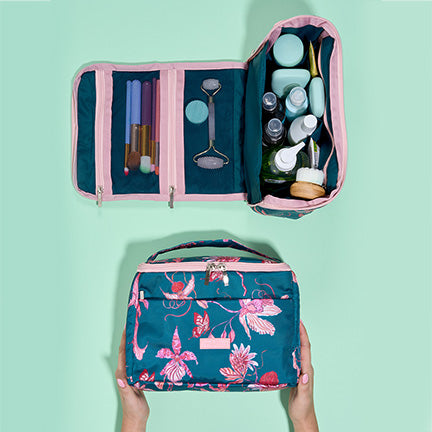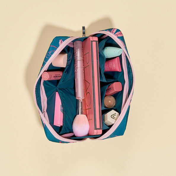 1. Organizador Plus: Organizador especial para viajes o para tener en casa y así guardar de una manera ordenada todos tus productos de aseo, de skincare o maquillaje. Es perfecto pues los productos pueden mantenerse parados y por la cantidad de bolsillos que tiene, puedes almacenar muchísimas cosas. Cuenta con dos bolsillos pequeños externos, 2 bolsillos en malla pequeños en la tapa y en el interior tiene 1 bolsillo mediano con cierre y 4 bolsillos pequeños. Medidas: 16 cm de alto x 24.5 cm de largo x 11 cm de profundidad 2. Essence Bag: Accesorio con un múltiples compartimientos y bolsillos en su interior. Ideal para usar como cosmetiquera, cartuchera o para llevar como organizador pequeño para viajes cortos. Medidas: 21 cm de largo x 11.5 cm de alto x 6 cm de ancho