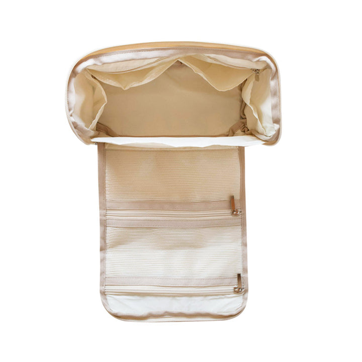 Organizador especial para viajes o para tener en casa y así guardar de una manera ordenada todos tus productos de aseo, de skincare o maquillaje. Es perfecto pues los productos pueden mantenerse parados y por la cantidad de bolsillos que tiene, puedes almacenar muchísimas cosas. Cuenta con dos bolsillos pequeños externos, 2 bolsillos en malla pequeños en la tapa y en el interior tiene 1 bolsillo mediano con cierre y 4 bolsillos pequeños. Medidas: 16 cm de alto x 24.5 cm de largo x 11 cm de profundidad Materiales: Lona gruesa sublimada, forro interno en poliéster, acolchado y malla.